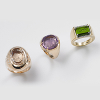 Anelli in oro rosa, cristallo di rocca, ametista, tzavorrite e brillanti