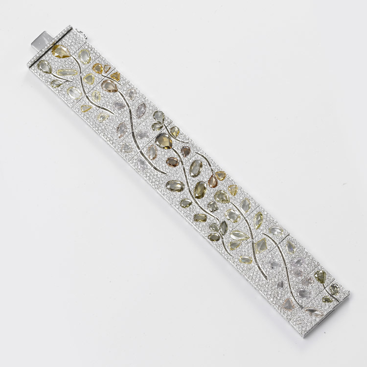 Bracciale in oro bianco, diamanti fancy multicolor e brillanti